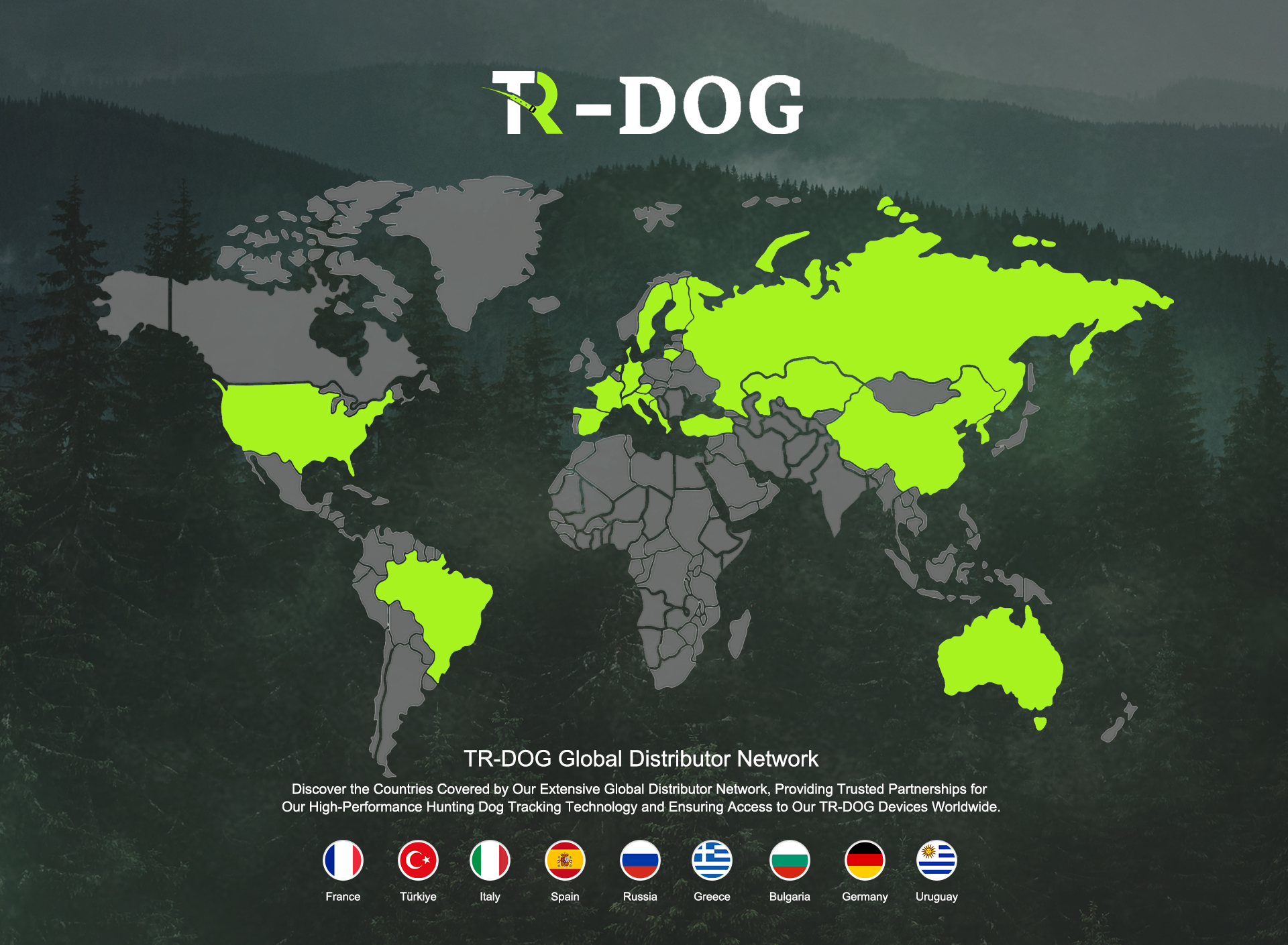 Tagann córas rianaithe agus oiliúna madraí TR le ardfheidhmíocht agus praghas inacmhainne, agus anois déantar an táirge a onnmhairiú chuig an margadh idirnáisiúnta. Déantar córais Rianaithe agus Oiliúna Madraí TR a onnmhairiú ar fud an domhain; déantar iad a onnmhairiú go dtí an Eoraip, an Aigéine, Meiriceá Thuaidh agus tíortha agus réigiúin eile.